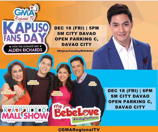 ALDUB|MAIDEN NATION @MaineAlden16 54 minutes ago HELLO DAVAO! Bae ready for the ultimate back to back visit ng ALDUB at MY BEBE LOVE!